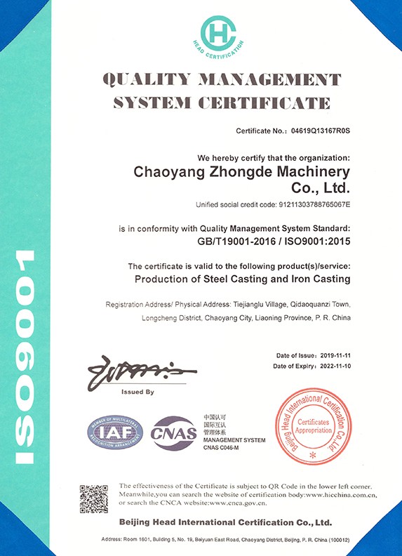 朝陽(yáng)中德機(jī)械有限公司座落于有著“東方佛都”之稱的三燕古都,歷史文化名城——朝陽(yáng),具體位置朝陽(yáng)市龍城區(qū)七道泉子鎮(zhèn)鐵匠爐村。公司創(chuàng)建于2006年5月是一家以鑄鋼件、鑄鐵件,集按用途設(shè)計(jì)、開發(fā)、生產(chǎn)、銷售于一體的,為機(jī)械設(shè)備配套的生產(chǎn)型公司。公司注冊(cè)資金1000萬(wàn),固定資產(chǎn)投資1480萬(wàn)元,主要生產(chǎn)設(shè)備GGW-5T,GGW-10T,GGW-10T中頻感應(yīng)爐;GDY-13C高溫電阻窯、GDY-9.5C電阻窯,M4000型直讀光譜儀,DP-3985型硬度測(cè)試儀,倒置式金相顯微鏡、拉伸試驗(yàn)機(jī)、超生波探傷儀,檢測(cè)手段完備。